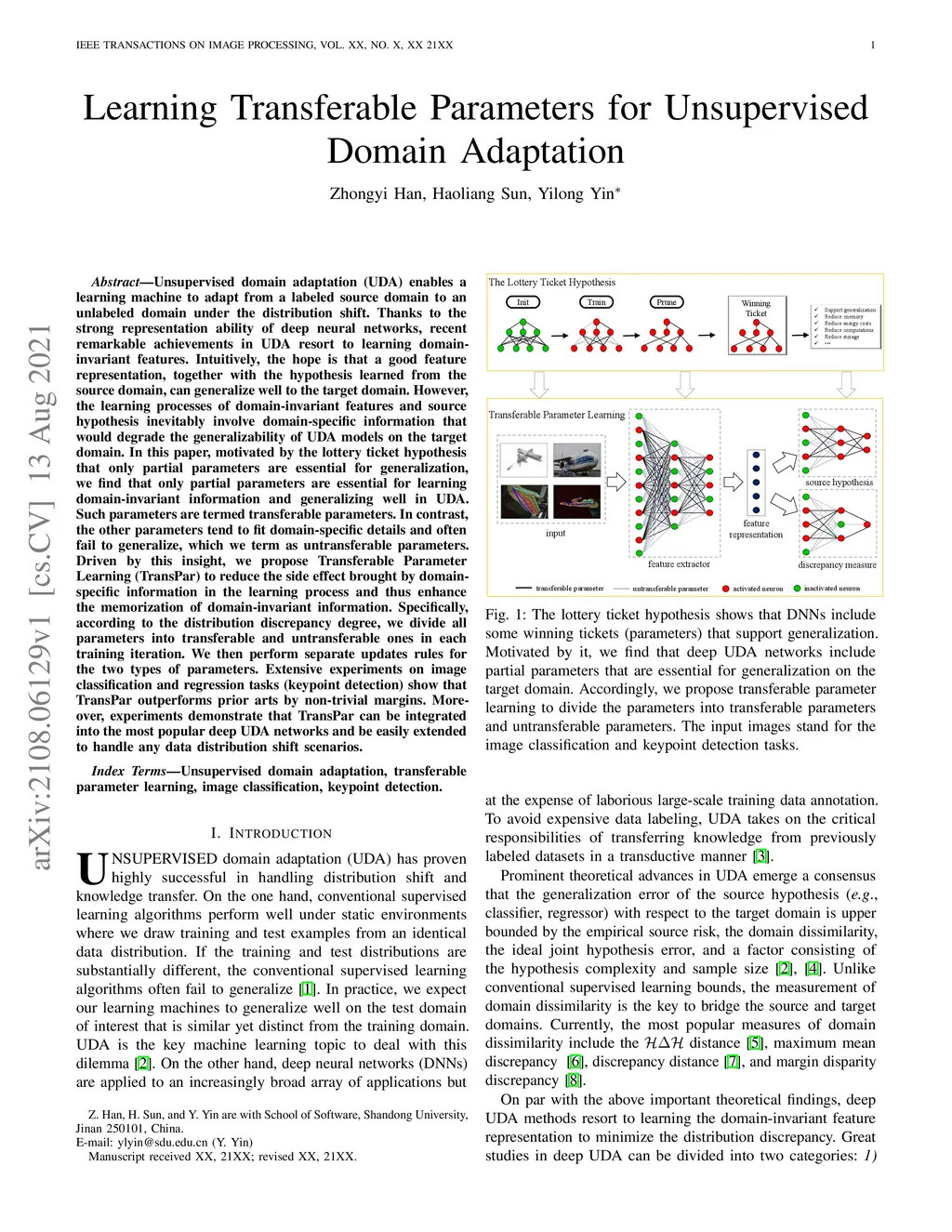 Learning Transferable Parameters for Unsupervised Domain Adaptation