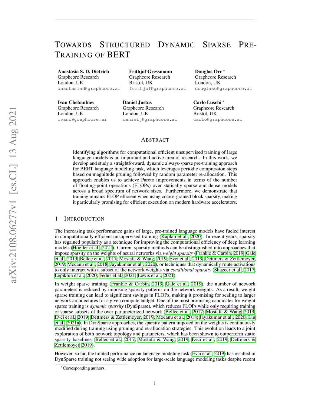 Towards Structured Dynamic Sparse Pre-Training of BERT