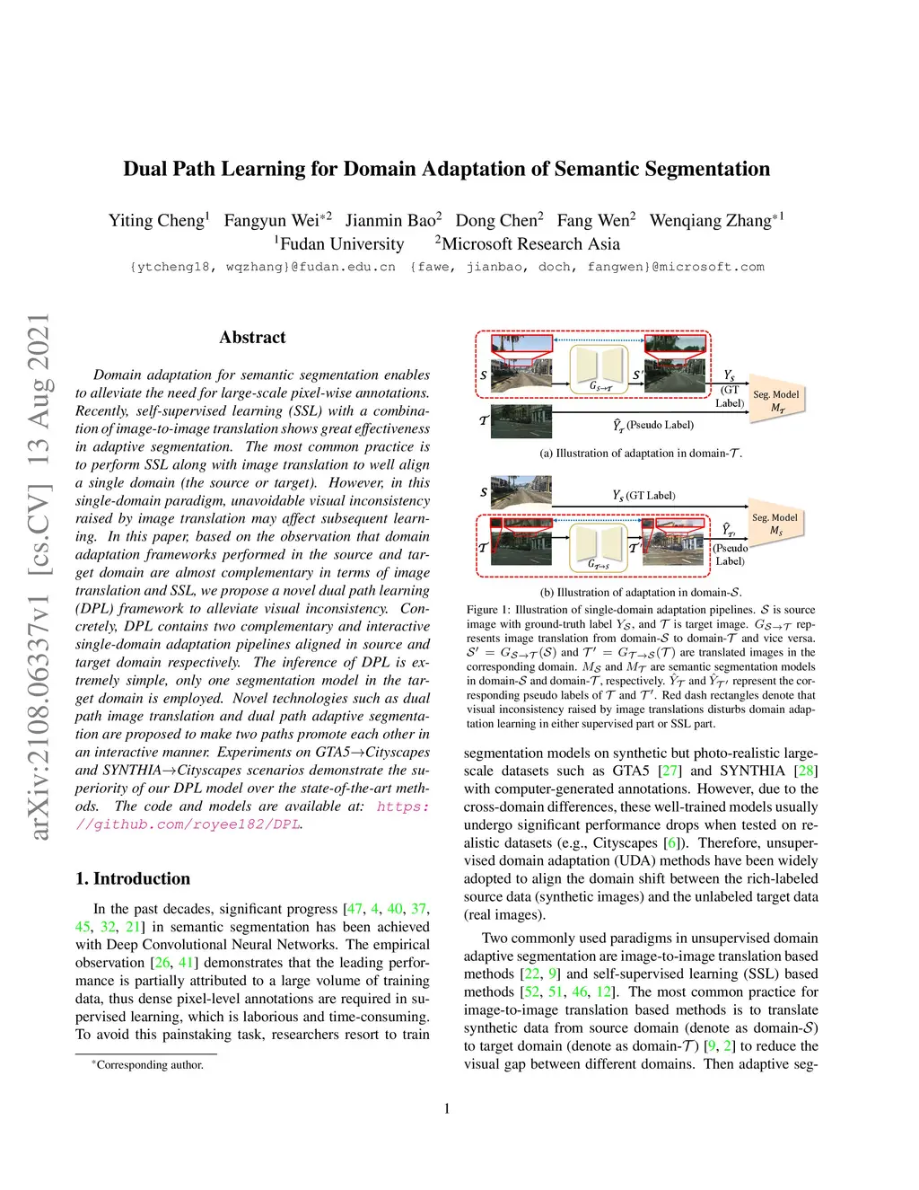Dual Path Learning for Domain Adaptation of Semantic Segmentation