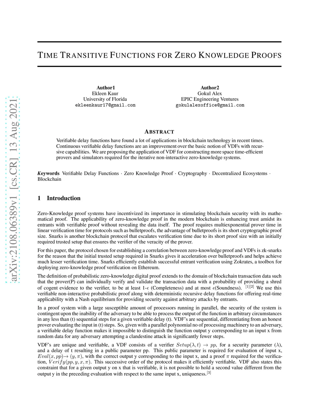 Time Transitive Functions for Zero Knowledge Proofs