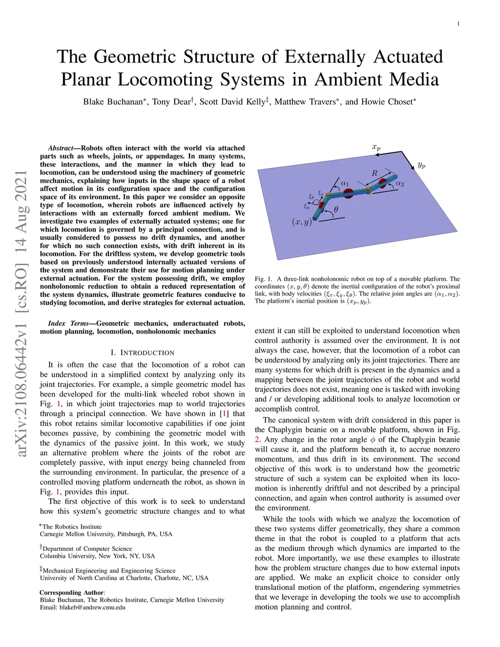 The Geometric Structure of Externally Actuated Planar Locomoting Systems