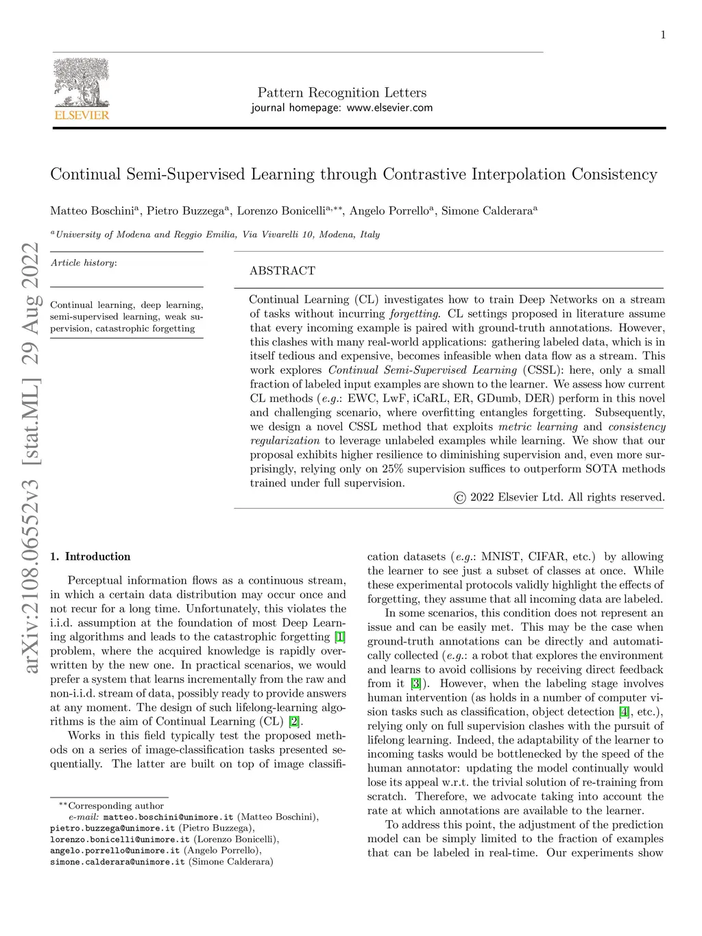 Continual Semi-Supervised Learning through Contrastive Interpolation
