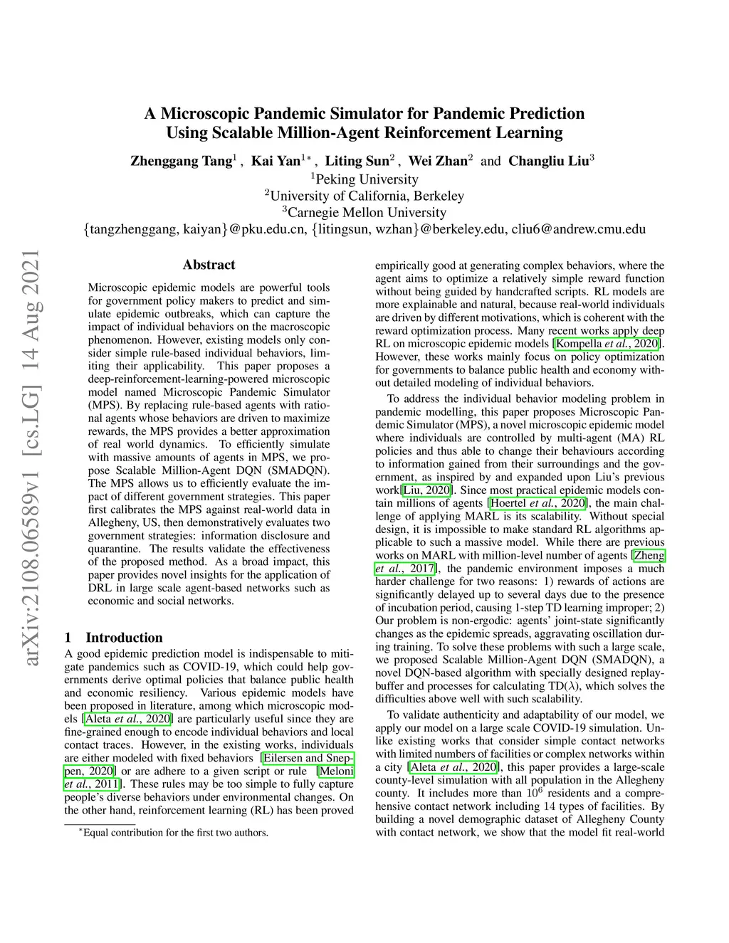 Microscopic epidemic models are powerful tools for government policy makers to predict and simulate epidemic outbreaks, which can capture the impact of individual behaviors on the macroscopic phenomenon. However, existing models only consider simple rule-based individual behaviors, limiting their applicability. This paper proposes a deep-reinforcement-learning-powered microscopic model named Microscopic Pandemic Simulator (MPS). By replacing rule-based agents with rational agents whose behaviors are driven to maximize rewards, the MPS provides a better approximation of real world dynamics. To efficiently simulate with massive amounts of agents in MPS, we propose Scalable Million-Agent DQN (SMADQN). The MPS allows us to efficiently evaluate the impact of different government strategies. This paper first calibrates the MPS against real-world data in Allegheny, US, then demonstratively evaluates two government strategies: information disclosure and quarantine. The results validate the effectiveness of the proposed method. As a broad impact, this paper provides novel insights for the application of DRL in large scale agent-based networks such as economic and social networks.