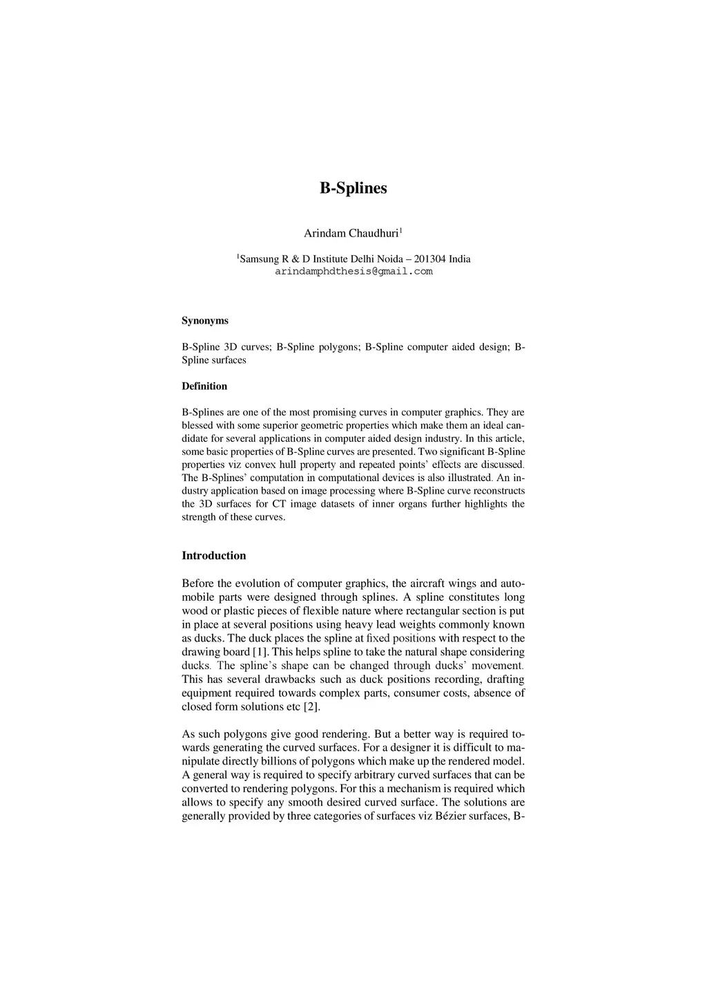 BSplines are one of the most promising curves in computer graphics. They are blessed with some superior geometric properties which make them an ideal candidate for several applications in computer aided design industry. In this article, some basic properties of B-Spline curves are presented. Two significant B-Spline properties viz convex hull property and repeated points effects are discussed. The BSplines computation in computational devices is also illustrated. An industry application based on image processing where B-Spline curve reconstructs the 3D surfaces for CT image datasets of inner organs further highlights the strength of these curves