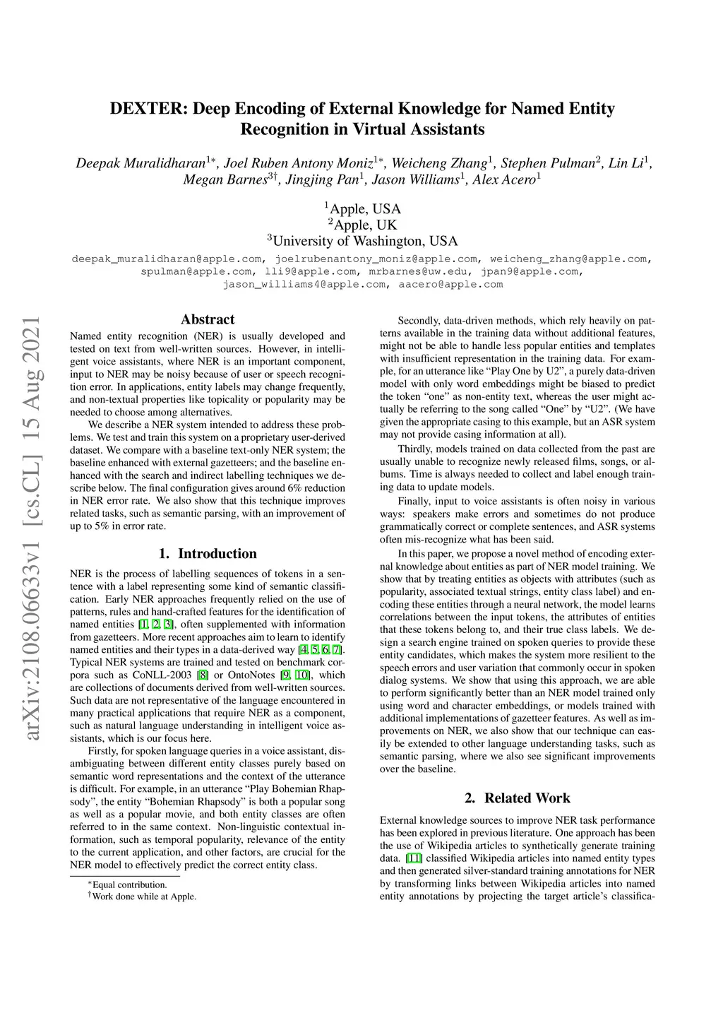 DEXTER: Deep Encoding of External Knowledge for Named Entity Recognition