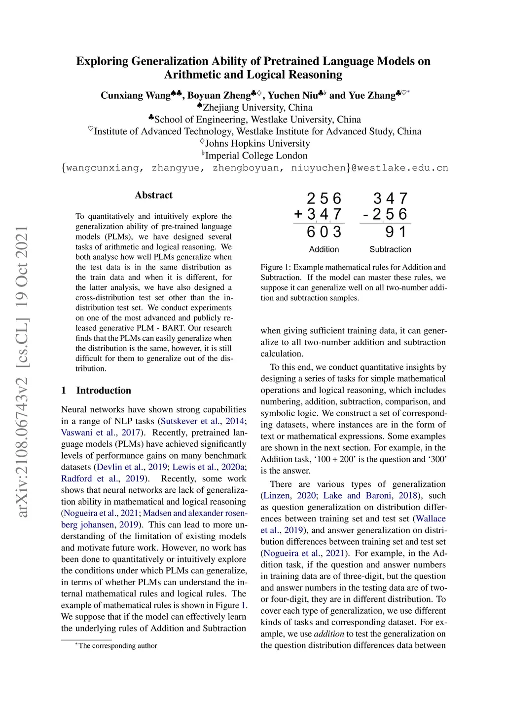 To quantitatively and intuitively explore the generalization ability of pre-trained language models (PLMs), we have designed several tasks of arithmetic and logical reasoning. We both analyse how well PLMs generalize when the test data is in the same distribution as the train data and when it is different, for the latter analysis, we have also designed a cross-distribution test set other than the in-distribution test set. We conduct experiments on one of the most advanced and publicly released generative PLM - BART. Our research finds that the PLMs can easily generalize when the distribution is the same, however, it is still difficult for them to generalize out of the distribution.