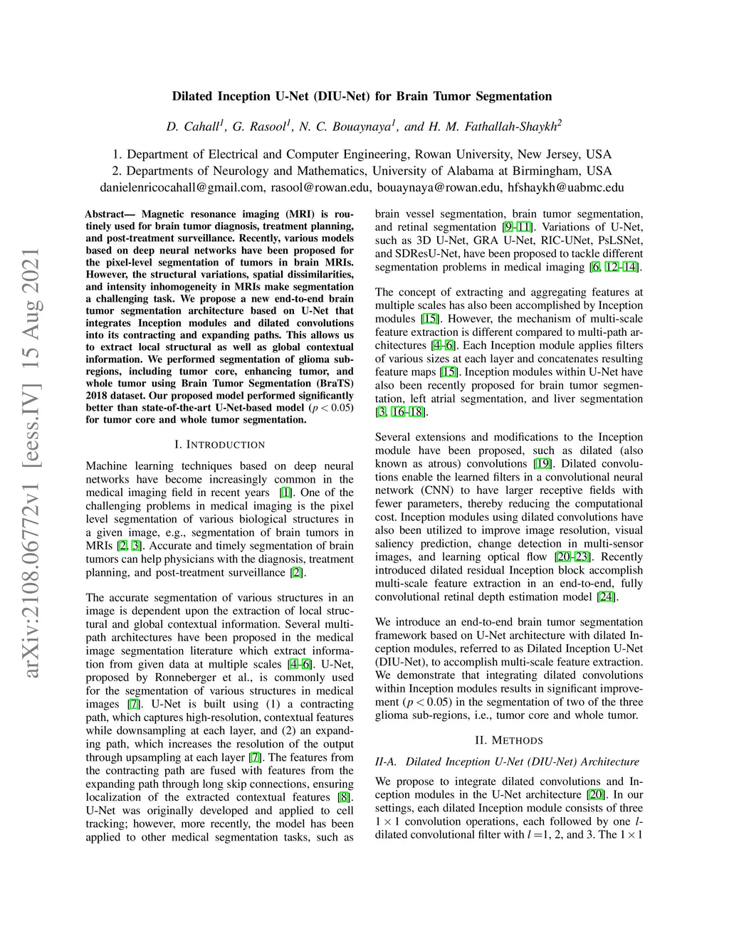 Dilated Inception U-Net (DIU-Net) for Brain Tumor Segmentation