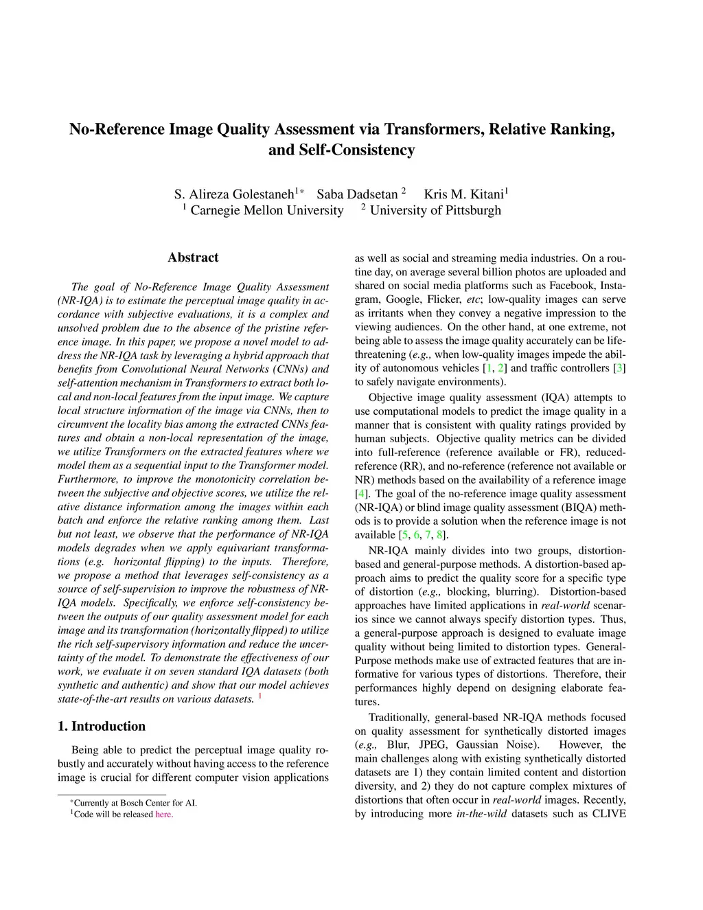No-Reference Image Quality Assessment via Transformers, Relative Ranking, and Self-Consistency