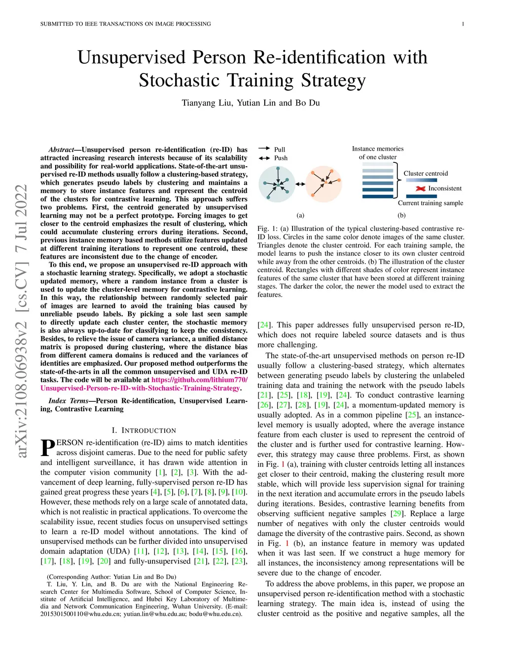 Unsupervised Person Re-identification with Stochastic Training Strategy