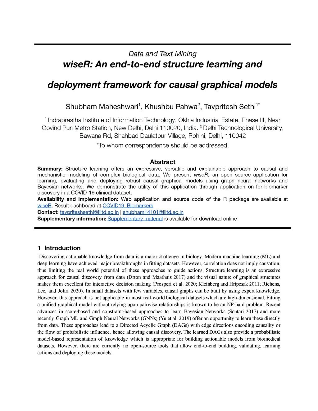 Structure learning offers an expressive, versatile and explainable approach to causal and mechanistic modeling of complex biological data. We present wiseR, an open source application for learning, evaluating and deploying robust causal graphical models using graph neural networks and Bayesian networks. We demonstrate the utility of this application through application on for biomarker discovery in a COVID-19 clinical dataset.
