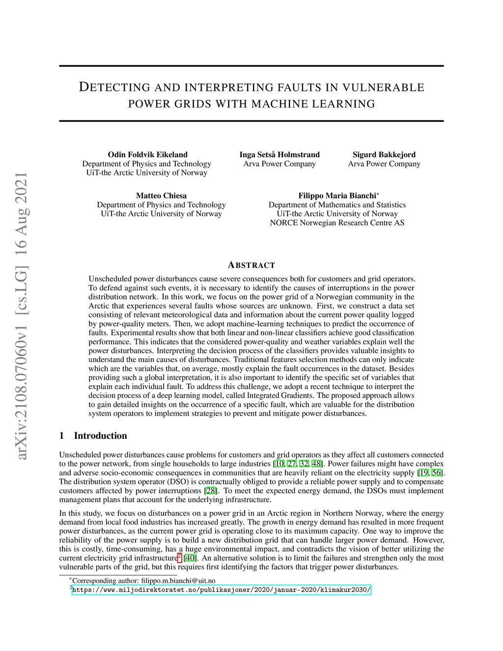 Unscheduled power disturbances cause severe consequences both for customers and grid operators. To defend against such events, it is necessary to identify the causes of interruptions in the power distribution network. In this work, we focus on the power grid of a Norwegian community in the Arctic that experiences several faults whose sources are unknown. First, we construct a data set consisting of relevant meteorological data and information about the current power quality logged by power-quality meters. Then, we adopt machine-learning techniques to predict the occurrence of faults. Experimental results show that both linear and non-linear classifiers achieve good classification performance. This indicates that the considered power-quality and weather variables explain well the power disturbances. Interpreting the decision process of the classifiers provides valuable insights to understand the main causes of disturbances. Traditional features selection methods can only indicate which are the variables that, on average, mostly explain the fault occurrences in the dataset. Besides providing such a global interpretation, it is also important to identify the specific set of variables that explain each individual fault. To address this challenge, we adopt a recent technique to interpret the decision process of a deep learning model, called Integrated Gradients. The proposed approach allows to gain detailed insights on the occurrence of a specific fault, which are valuable for the distribution system operators to implement strategies to prevent and mitigate power disturbances.