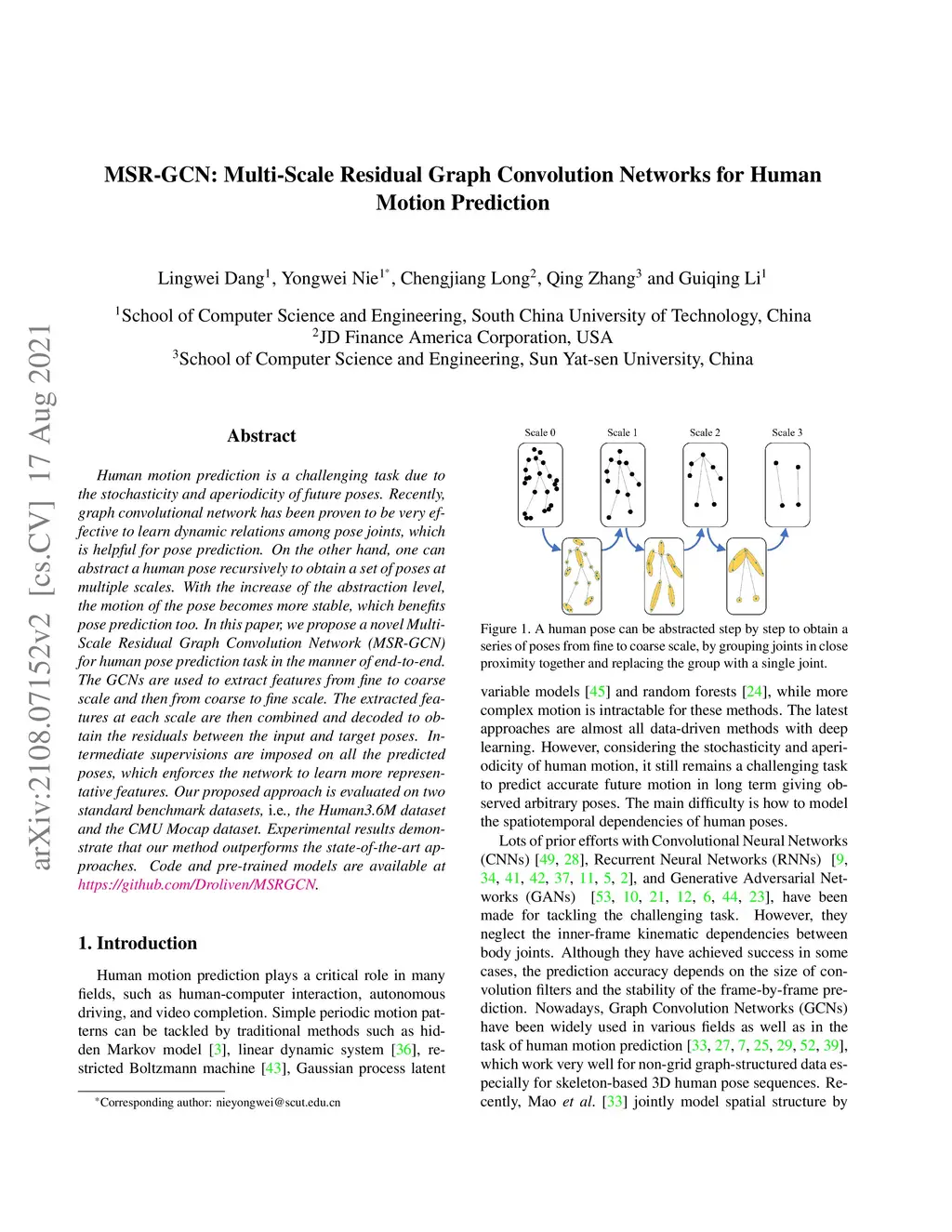 MSR-GCN: Multi-Scale Residual Graph Convolution Networks for Human