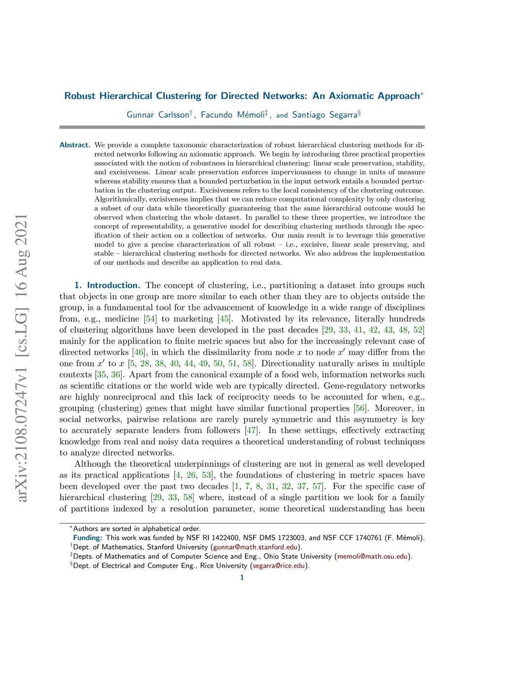 We provide a complete taxonomic characterization of robust hierarchical clustering methods for directed networks following an axiomatic approach. We begin by introducing three practical properties associated with the notion of robustness in hierarchical clustering: linear scale preservation, stability, and excisiveness. Linear scale preservation enforces imperviousness to change in units of measure whereas stability ensures that a bounded perturbation in the input network entails a bounded perturbation in the clustering output. Excisiveness refers to the local consistency of the clustering outcome. Algorithmically, excisiveness implies that we can reduce computational complexity by only clustering a subset of our data while theoretically guaranteeing that the same hierarchical outcome would be observed when clustering the whole dataset. In parallel to these three properties, we introduce the concept of representability, a generative model for describing clustering methods through the specification of their action on a collection of networks. Our main result is to leverage this generative model to give a precise characterization of all robust -- i.e., excisive, linear scale preserving, and stable -- hierarchical clustering methods for directed networks. We also address the implementation of our methods and describe an application to real data.