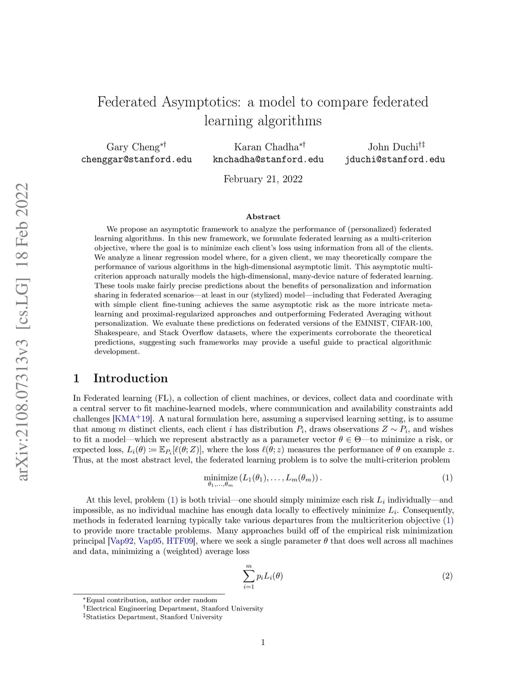 We propose an asymptotic framework to analyze the performance of (personalized) federated learning algorithms. In this new framework, we formulate federated learning as a multi-criterion objective, where the goal is to minimize each client's loss using information from all of the clients. We analyze a linear regression model where, for a given client, we may theoretically compare the performance of various algorithms in the high-dimensional asymptotic limit. This asymptotic multi-criterion approach naturally models the high-dimensional, many-device nature of federated learning. These tools make fairly precise predictions about the benefits of personalization and information sharing in federated scenarios -- at least in our (stylized) model -- including that Federated Averaging with simple client fine-tuning achieves the same asymptotic risk as the more intricate meta-learning and proximal-regularized approaches and outperforming Federated Averaging without personalization. We evaluate these predictions on federated versions of the EMNIST, CIFAR-100, Shakespeare, and Stack Overflow datasets, where the experiments corroborate the theoretical predictions, suggesting such frameworks may provide a useful guide to practical algorithmic development.