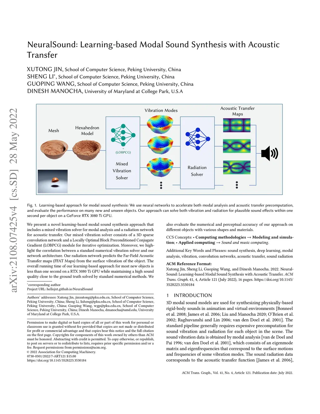 NeuralSound: Learning-based Modal Sound Synthesis With Acoustic Transfer