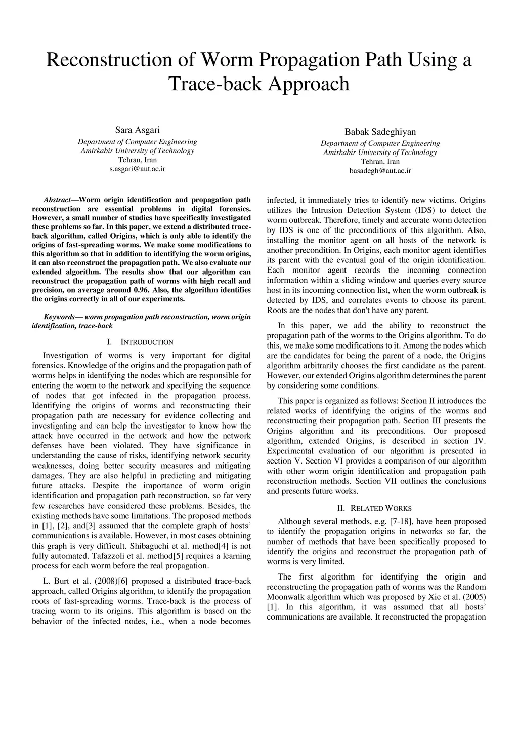 Reconstruction of Worm Propagation Path Using a Trace-back Approach