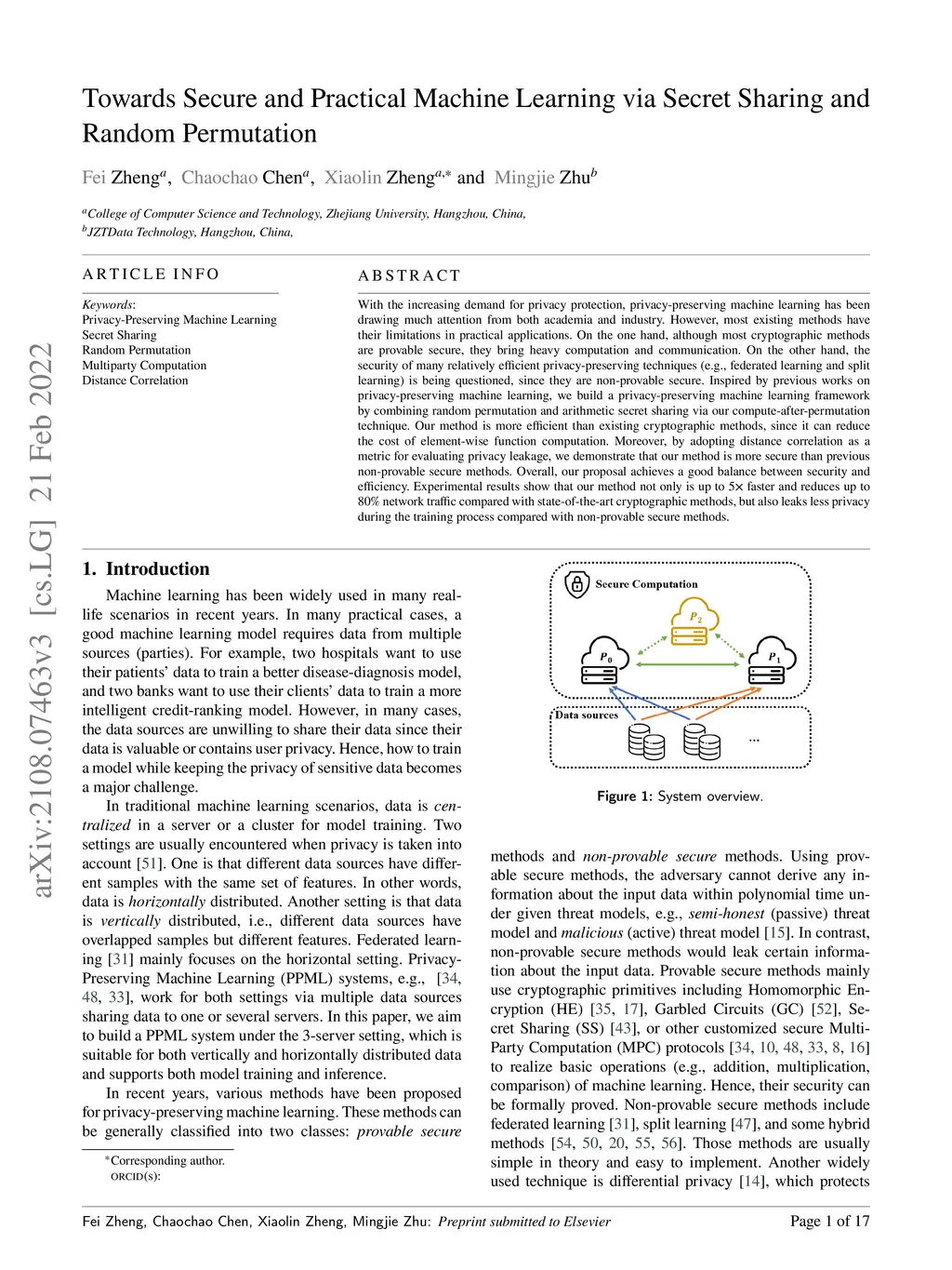 Towards Secure and Practical Machine Learning via Secret Sharing and