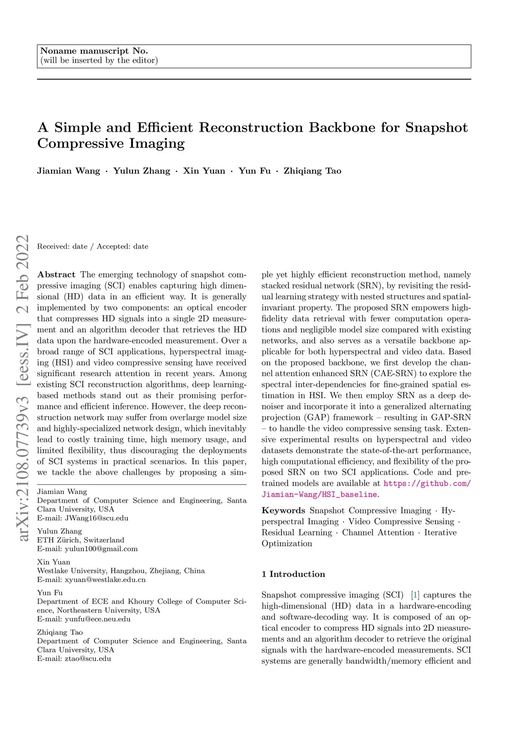 The emerging technology of snapshot compressive imaging (SCI) enables capturing high dimensional (HD) data in an efficient way. It is generally implemented by two components: an optical encoder that compresses HD signals into a 2D measurement and an algorithm decoder that retrieves the HD data upon the hardware-encoded measurement. Over a broad range of SCI applications, hyperspectral imaging (HSI) and video compressive sensing have received significant research attention in recent years. Among existing SCI reconstruction algorithms, deep learning-based methods stand out as their promising performance and efficient inference. However, the deep reconstruction network may suffer from overlarge model size and highly-specialized network design, which inevitably lead to costly training time, high memory usage, and limited flexibility, thus discouraging the deployments of SCI systems in practical scenarios. In this paper, we tackle the above challenges by proposing a simple yet highly efficient reconstruction method, namely stacked residual network (SRN), by revisiting the residual learning strategy with nested structures and spatial-invariant property. The proposed SRN empowers high-fidelity data retrieval with fewer computation operations and negligible model size compared with existing networks, and also serves as a versatile backbone applicable for both hyperspectral and video data. Based on the proposed backbone, we first develop the channel attention enhanced SRN (CAE-SRN) to explore the spectral inter-dependencies for fine-grained spatial estimation in HSI. We then employ SRN as a deep denoiser and incorporate it into a generalized alternating projection (GAP) framework -- resulting in GAP-SRN -- to handle the video compressive sensing task. Experimental results demonstrate the state-of-the-art performance, high computational efficiency of the proposed SRN on two SCI applications.