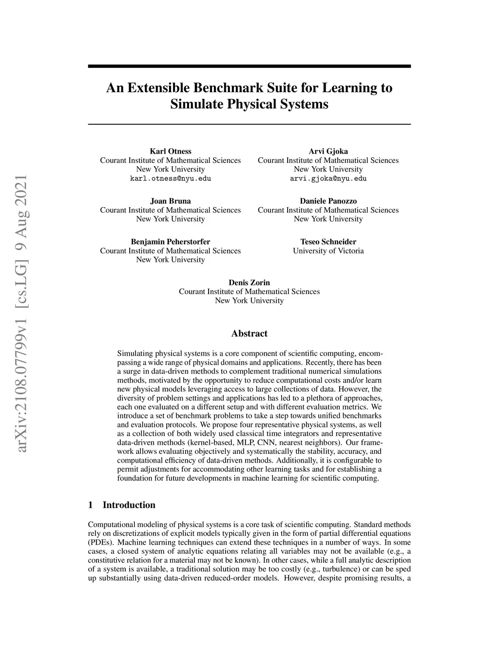 An Extensible Benchmark Suite for Learning to Simulate Physical Systems