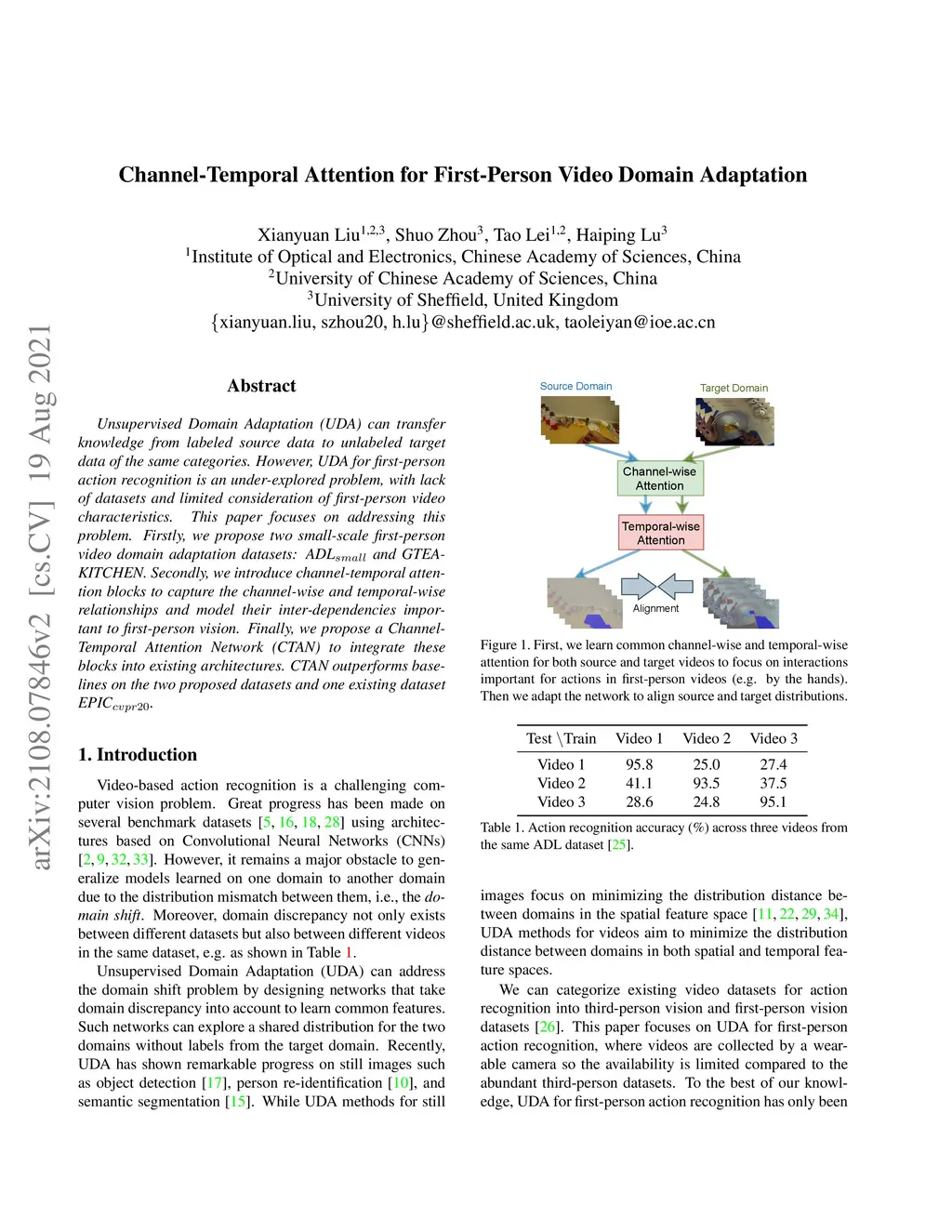 Channel-Temporal Attention for First-Person Video Domain Adaptation