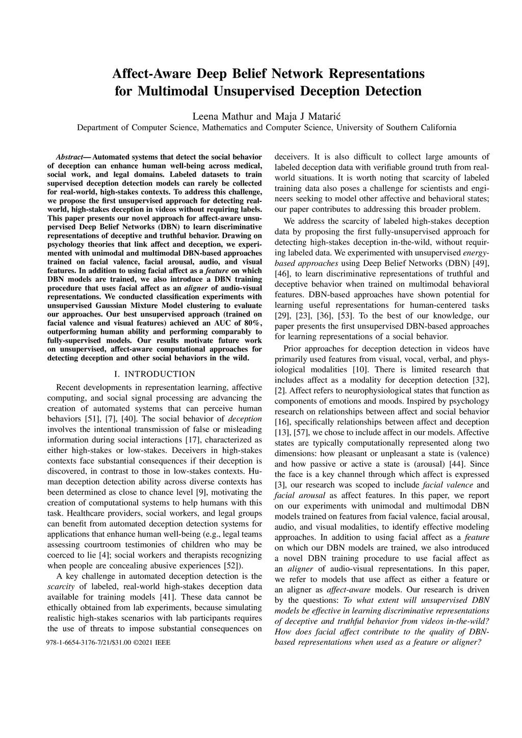 Affect-Aware Deep Belief Network Representations for Multimodal