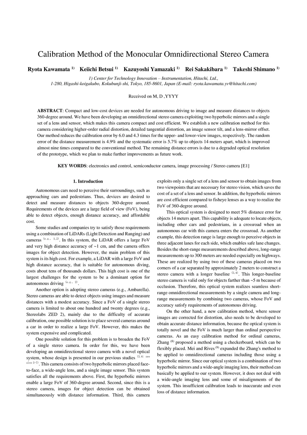 Calibration Method of the Monocular Omnidirectional Stereo Camera