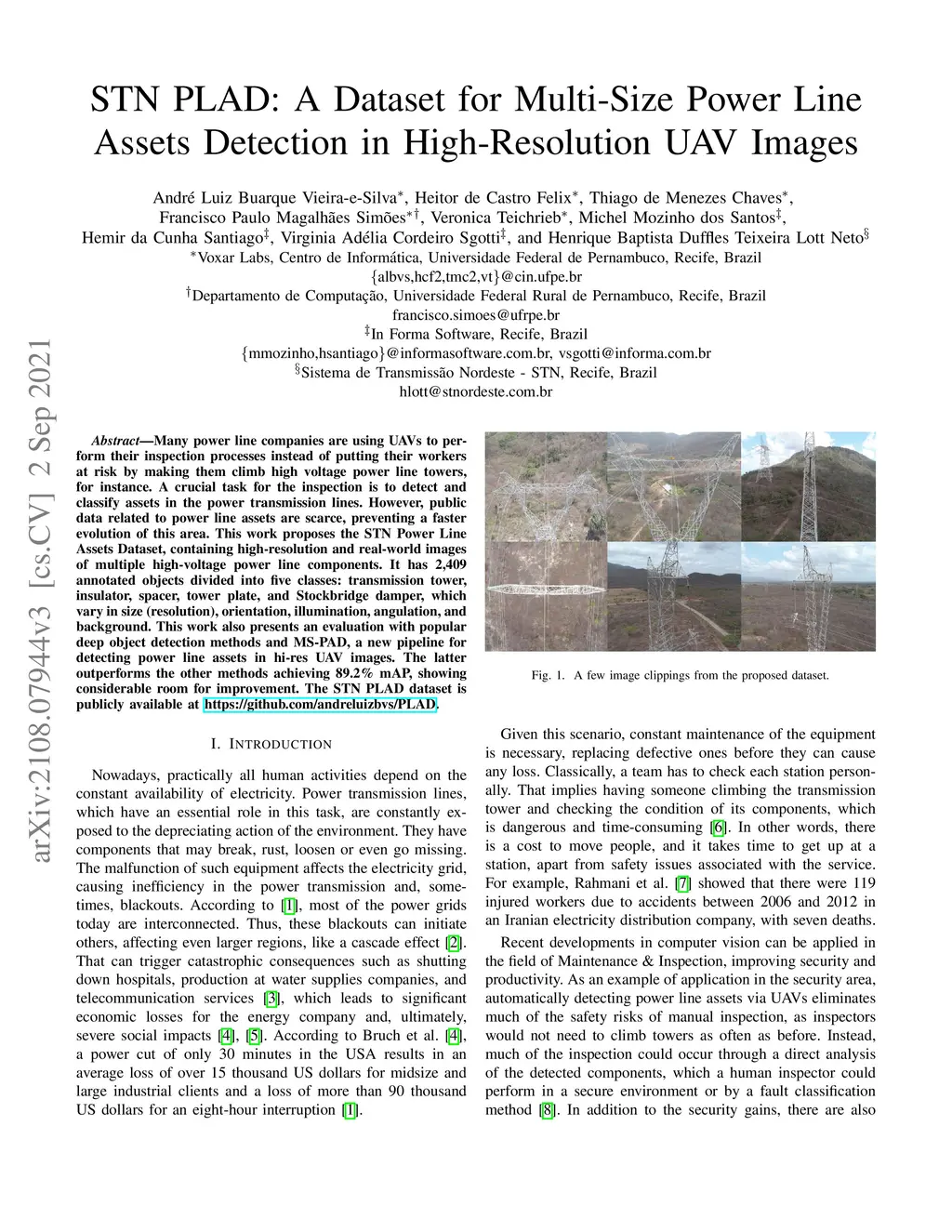 STN PLAD: A Dataset for Multi-Size Power Line Assets Detection in