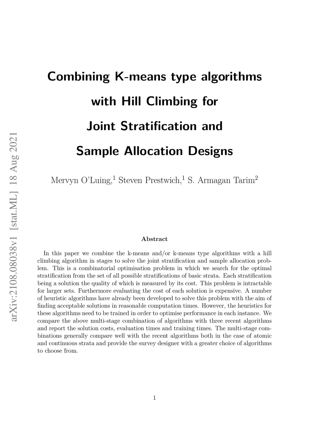 In this paper we combine the k-means and/or k-means type algorithms with a hill climbing algorithm in stages to solve the joint stratification and sample allocation problem. This is a combinatorial optimisation problem in which we search for the optimal stratification from the set of all possible stratifications of basic strata. Each stratification being a solution the quality of which is measured by its cost. This problem is intractable for larger sets. Furthermore evaluating the cost of each solution is expensive. A number of heuristic algorithms have already been developed to solve this problem with the aim of finding acceptable solutions in reasonable computation times. However, the heuristics for these algorithms need to be trained in order to optimise performance in each instance. We compare the above multi-stage combination of algorithms with three recent algorithms and report the solution costs, evaluation times and training times. The multi-stage combinations generally compare well with the recent algorithms both in the case of atomic and continuous strata and provide the survey designer with a greater choice of algorithms to choose from.