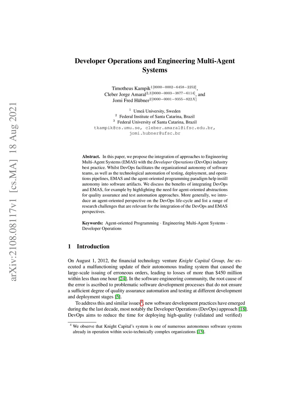 Developer Operations and Engineering Multi-Agent Systems