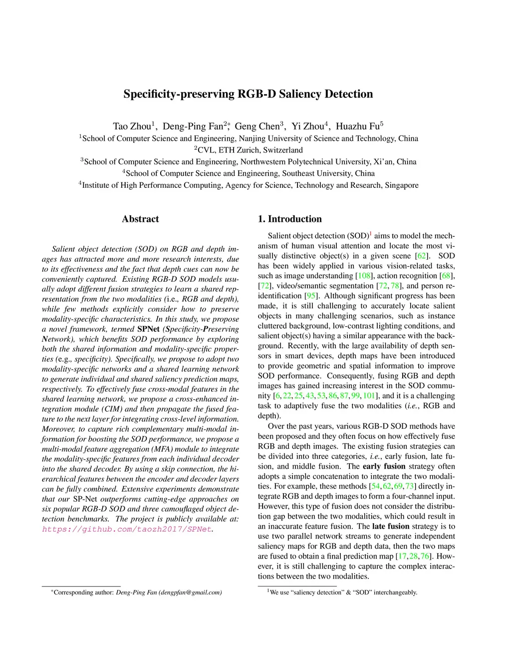 Specificity-preserving RGB-D Saliency Detection