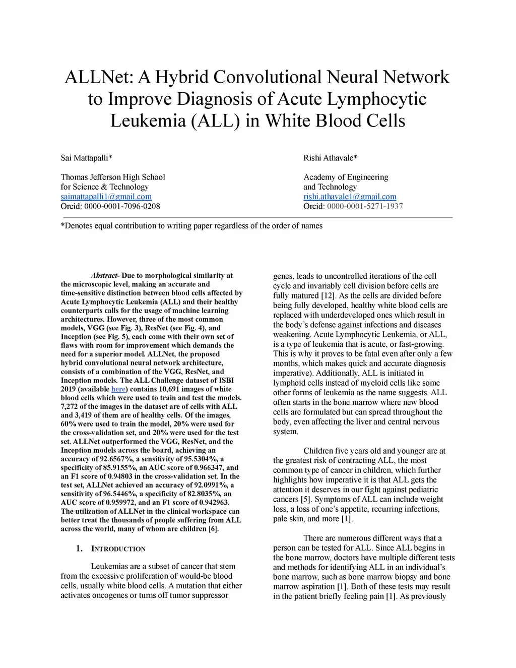 ALLNet: A Hybrid Convolutional Neural Network to Improve Diagnosis of