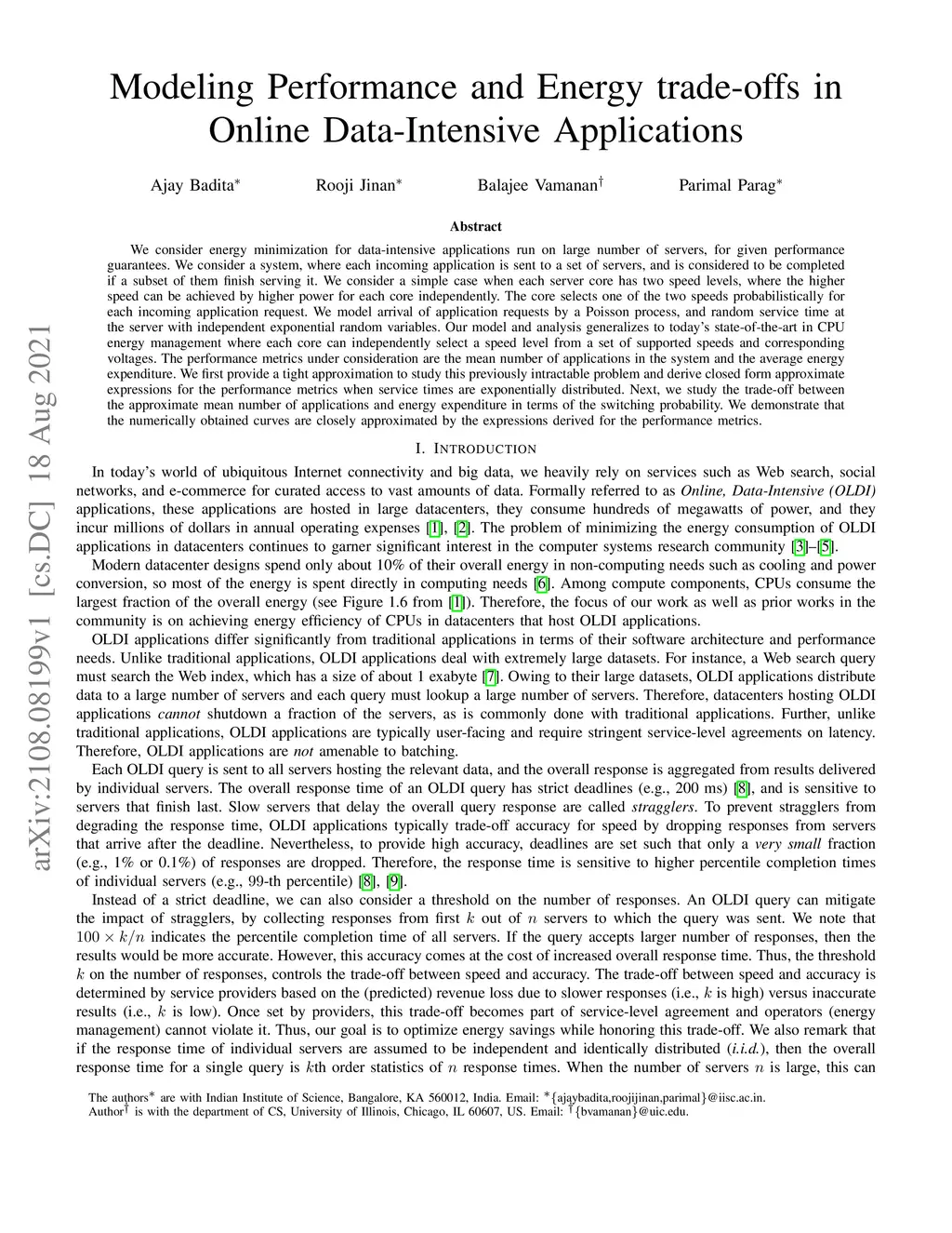 Modeling Performance and Energy trade-offs in Online Data-Intensive