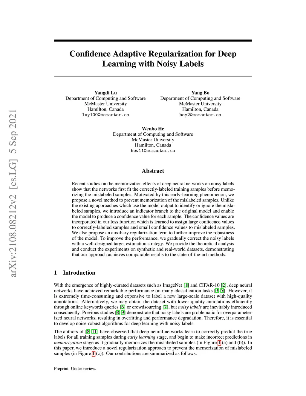 Confidence Adaptive Regularization for Deep Learning with Noisy Labels