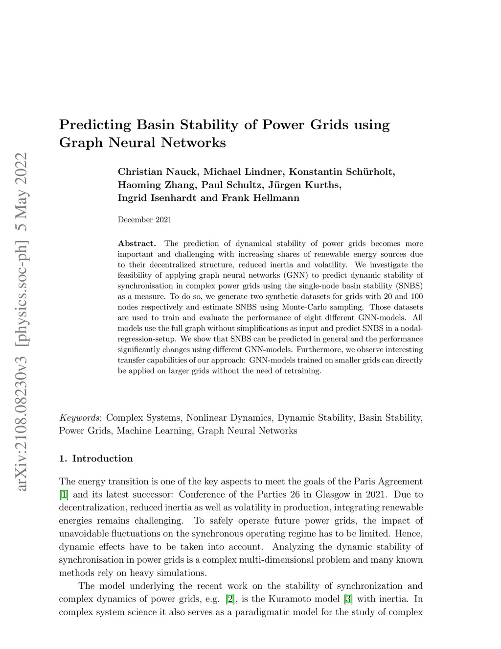 The prediction of dynamical stability of power grids becomes more important and challenging with increasing shares of renewable energy sources due to their decentralized structure, reduced inertia and volatility. We investigate the feasibility of applying graph neural networks (GNN) to predict dynamic stability of synchronisation in complex power grids using the single-node basin stability (SNBS) as a measure. To do so, we generate two synthetic datasets for grids with 20 and 100 nodes respectively and estimate SNBS using Monte-Carlo sampling. Those datasets are used to train and evaluate the performance of eight different GNN-models. All models use the full graph without simplifications as input and predict SNBS in a nodal-regression-setup. We show that SNBS can be predicted in general and the performance significantly changes using different GNN-models. Furthermore, we observe interesting transfer capabilities of our approach: GNN-models trained on smaller grids can directly be applied on larger grids without the need of retraining.