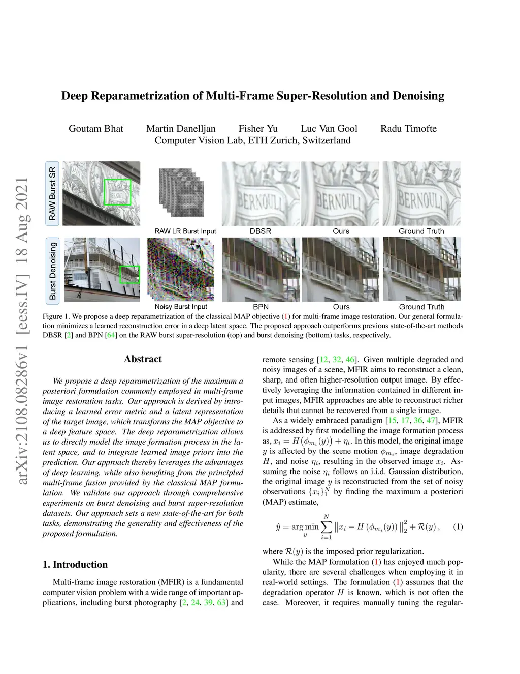 Deep Reparametrization of Multi-Frame Super-Resolution and Denoising