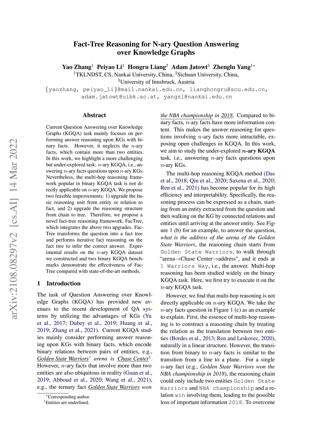 Fact-Tree Reasoning for N-ary Question Answering over Knowledge Graphs