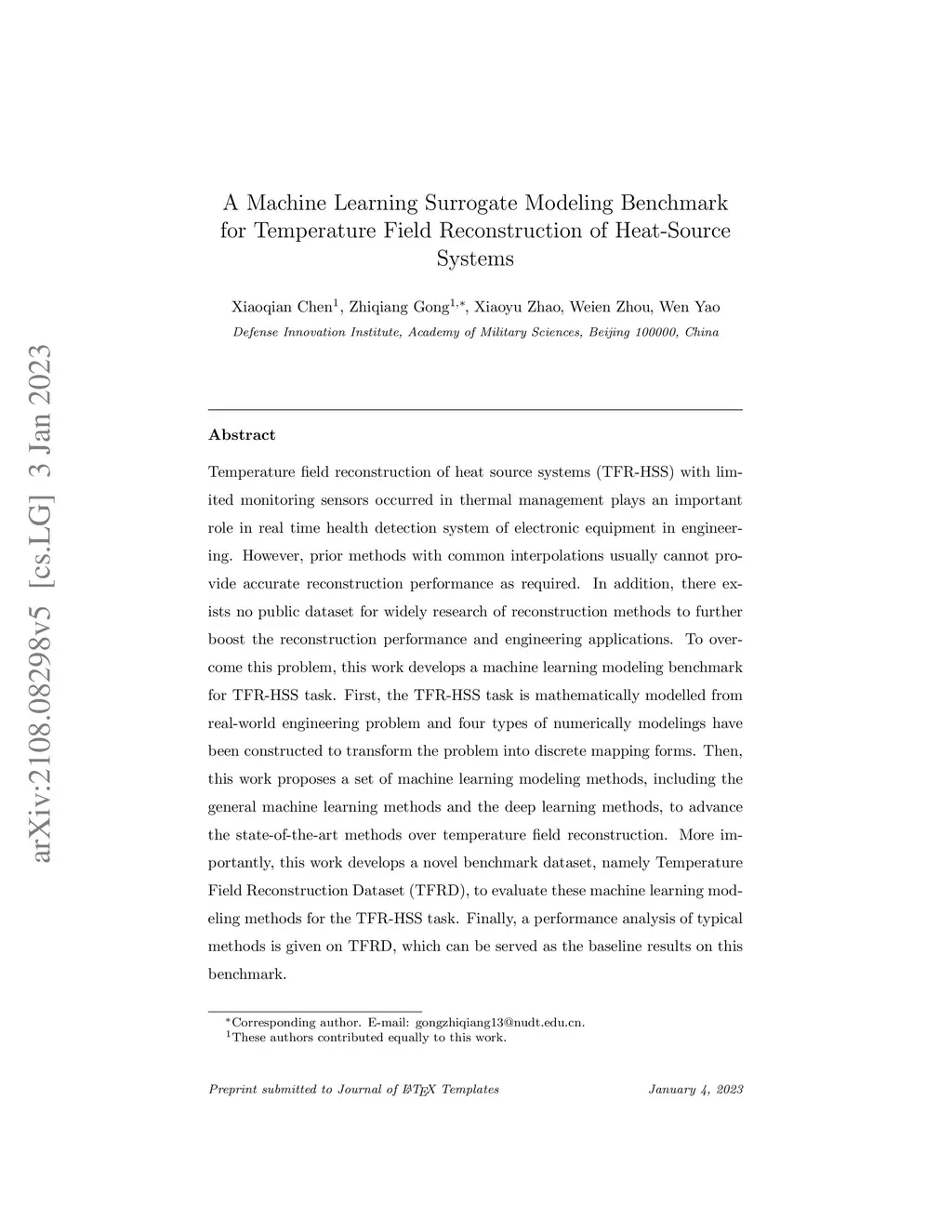 A Machine Learning Surrogate Modeling Benchmark for Temperature Field