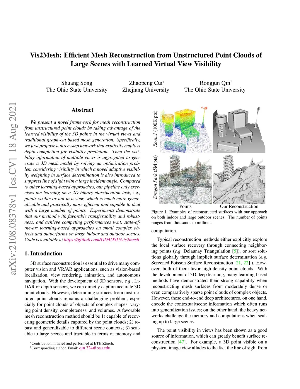 Vis2Mesh: Efficient Mesh Reconstruction from Unstructured Point Clouds