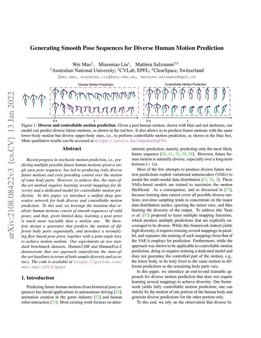 Generating Smooth Pose Sequences for Diverse Human Motion Prediction