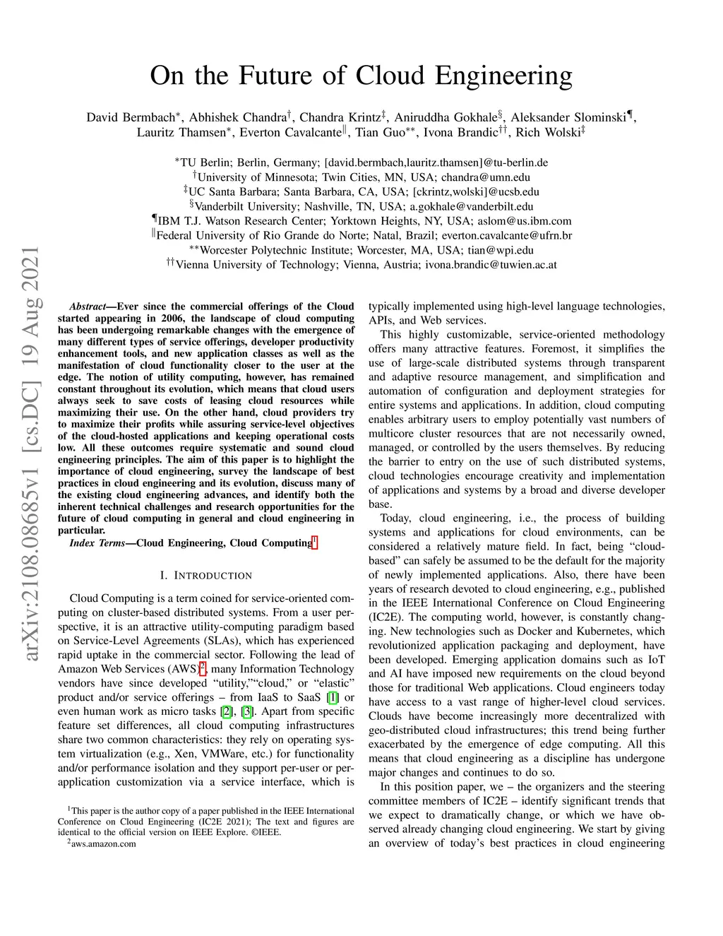 Ever since the commercial offerings of the Cloud started appearing in 2006, the landscape of cloud computing has been undergoing remarkable changes with the emergence of many different types of service offerings, developer productivity enhancement tools, and new application classes as well as the manifestation of cloud functionality closer to the user at the edge. The notion of utility computing, however, has remained constant throughout its evolution, which means that cloud users always seek to save costs of leasing cloud resources while maximizing their use. On the other hand, cloud providers try to maximize their profits while assuring service-level objectives of the cloud-hosted applications and keeping operational costs low. All these outcomes require systematic and sound cloud engineering principles. The aim of this paper is to highlight the importance of cloud engineering, survey the landscape of best practices in cloud engineering and its evolution, discuss many of the existing cloud engineering advances, and identify both the inherent technical challenges and research opportunities for the future of cloud computing in general and cloud engineering in particular.