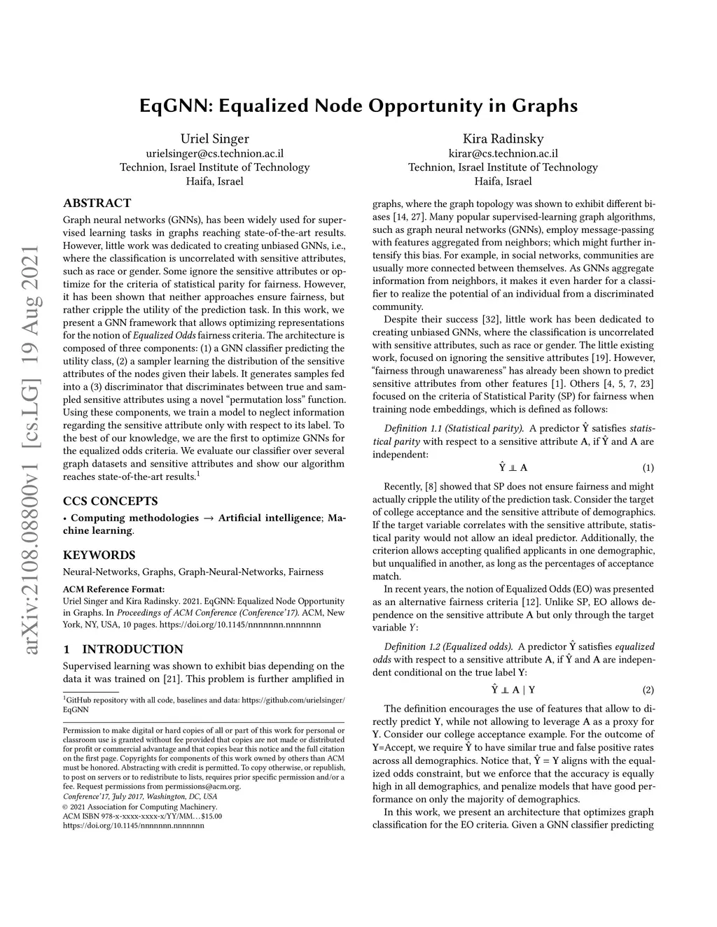 Graph neural networks (GNNs), has been widely used for supervised learning tasks in graphs reaching state-of-the-art results. However, little work was dedicated to creating unbiased GNNs, i.e., where the classification is uncorrelated with sensitive attributes, such as race or gender. Some ignore the sensitive attributes or optimize for the criteria of statistical parity for fairness. However, it has been shown that neither approaches ensure fairness, but rather cripple the utility of the prediction task. In this work, we present a GNN framework that allows optimizing representations for the notion of Equalized Odds fairness criteria. The architecture is composed of three components: (1) a GNN classifier predicting the utility class, (2) a sampler learning the distribution of the sensitive attributes of the nodes given their labels. It generates samples fed into a (3) discriminator that discriminates between true and sampled sensitive attributes using a novel "permutation loss" function. Using these components, we train a model to neglect information regarding the sensitive attribute only with respect to its label. To the best of our knowledge, we are the first to optimize GNNs for the equalized odds criteria. We evaluate our classifier over several graph datasets and sensitive attributes and show our algorithm reaches state-of-the-art results.