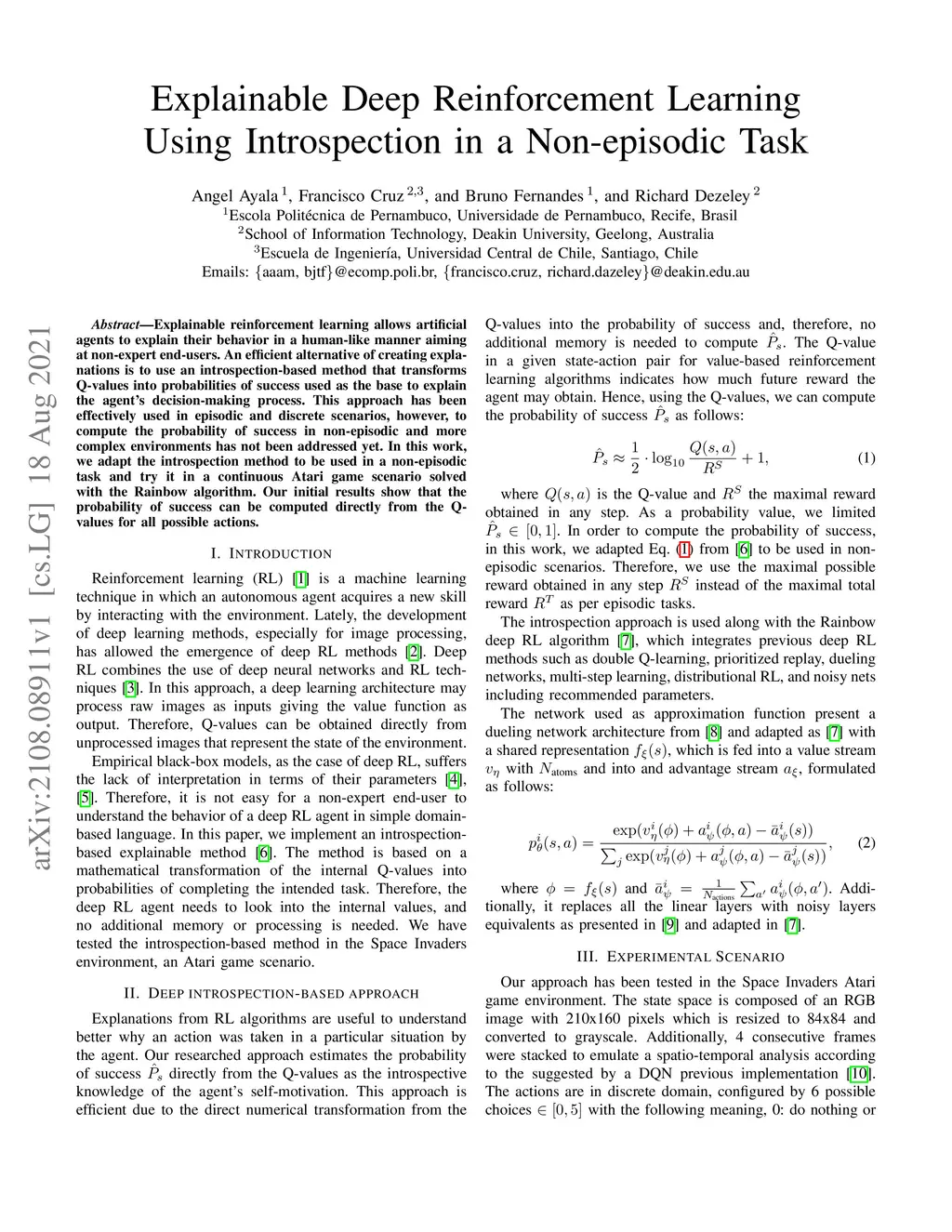 Explainable reinforcement learning allows artificial agents to explain their behavior in a human-like manner aiming at non-expert end-users. An efficient alternative of creating explanations is to use an introspection-based method that transforms Q-values into probabilities of success used as the base to explain the agent's decision-making process. This approach has been effectively used in episodic and discrete scenarios, however, to compute the probability of success in non-episodic and more complex environments has not been addressed yet. In this work, we adapt the introspection method to be used in a non-episodic task and try it in a continuous Atari game scenario solved with the Rainbow algorithm. Our initial results show that the probability of success can be computed directly from the Q-values for all possible actions.