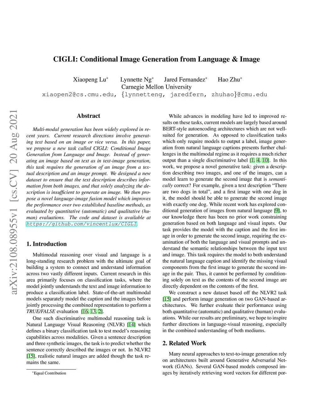 CIGLI: Conditional Image Generation from Language & Image