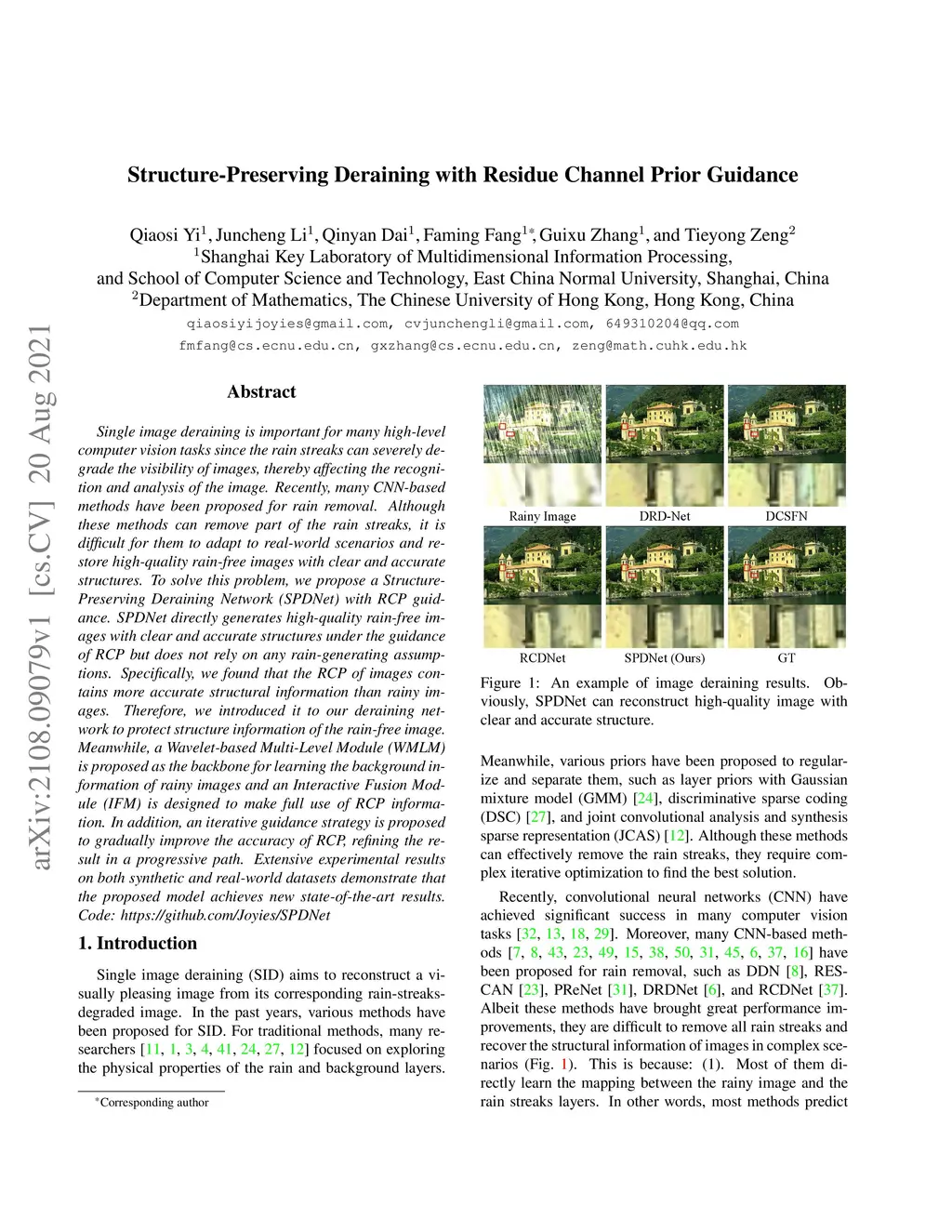 Structure-Preserving Deraining with Residue Channel Prior Guidance