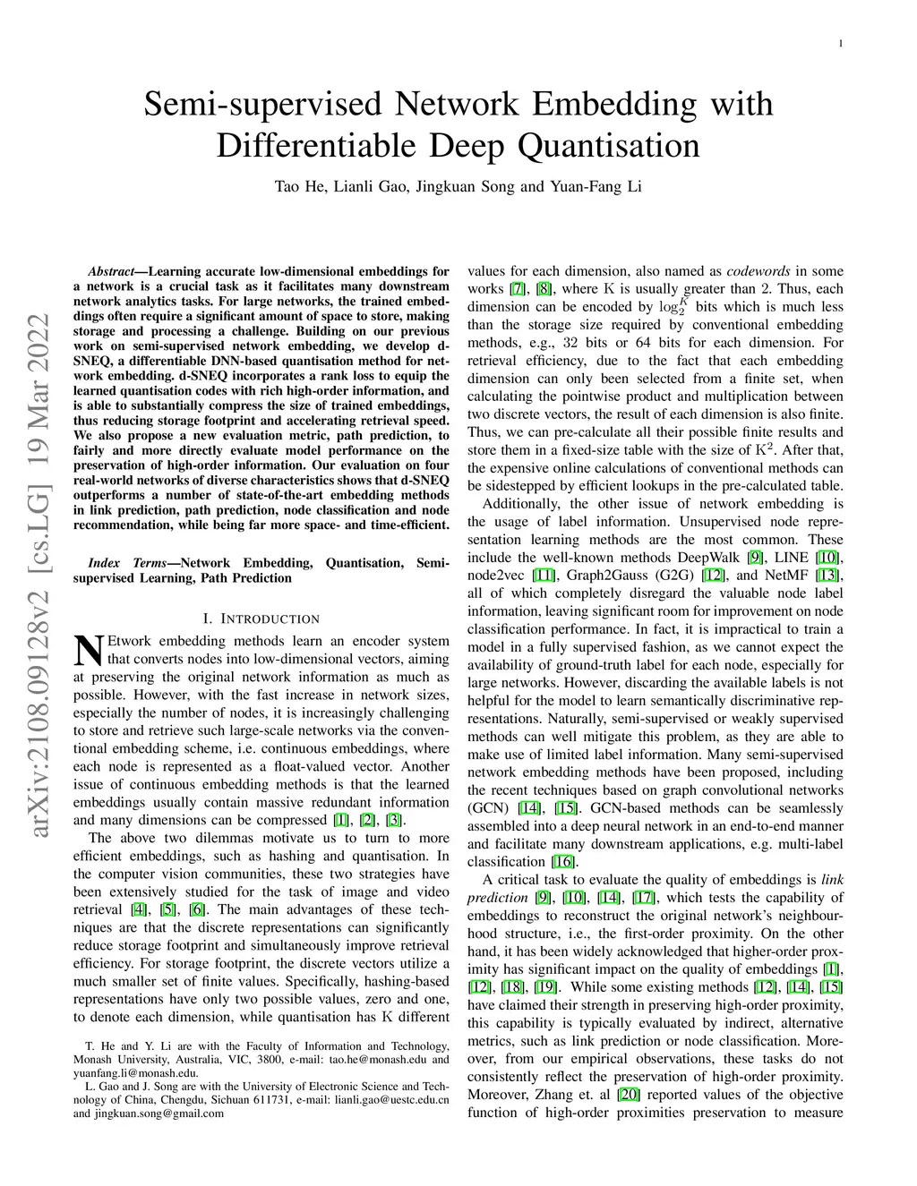 Semi-supervised Network Embedding with Differentiable Deep Quantisation