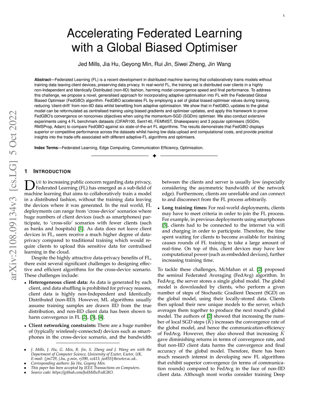 Accelerating Federated Learning with a Global Biased Optimiser