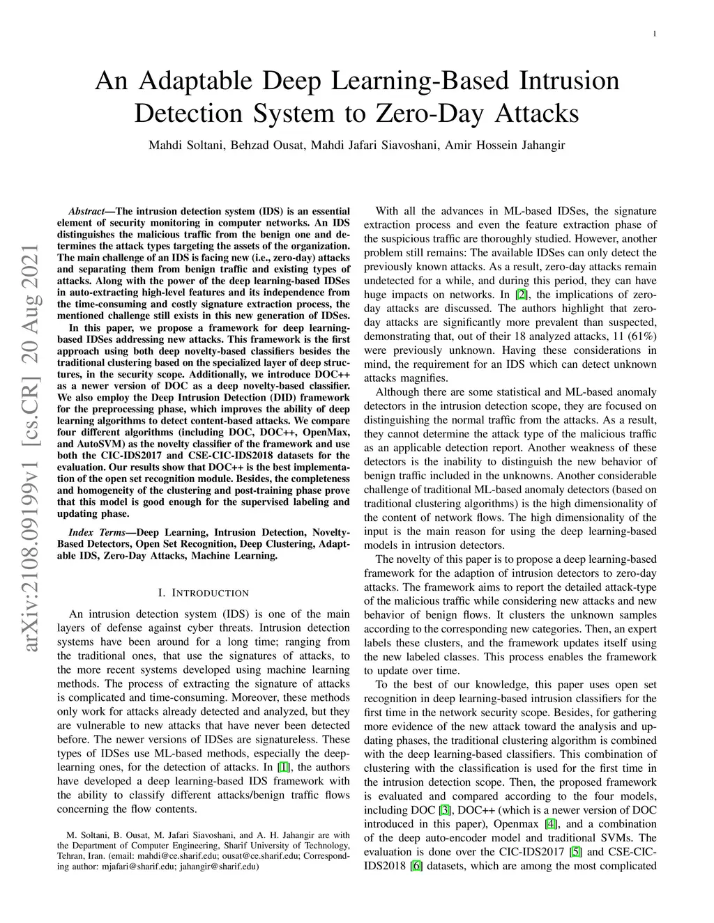 An Adaptable Deep Learning-Based Intrusion Detection System to Zero-Day
