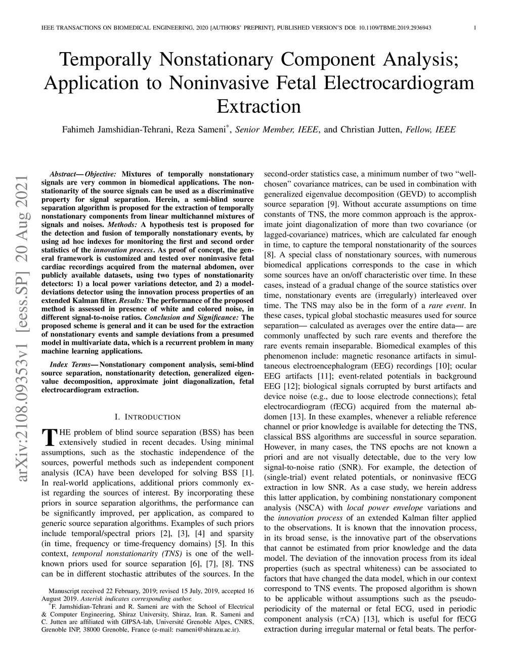 Temporally Nonstationary Component Analysis; Application to Noninvasive