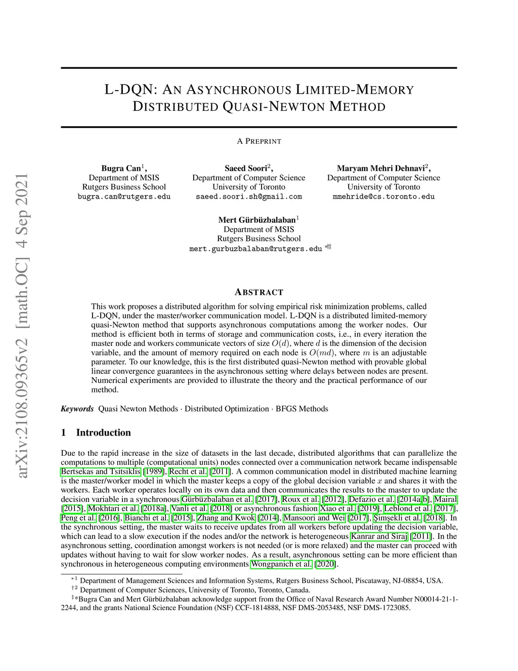 L-DQN: An Asynchronous Limited-Memory Distributed Quasi-Newton Method