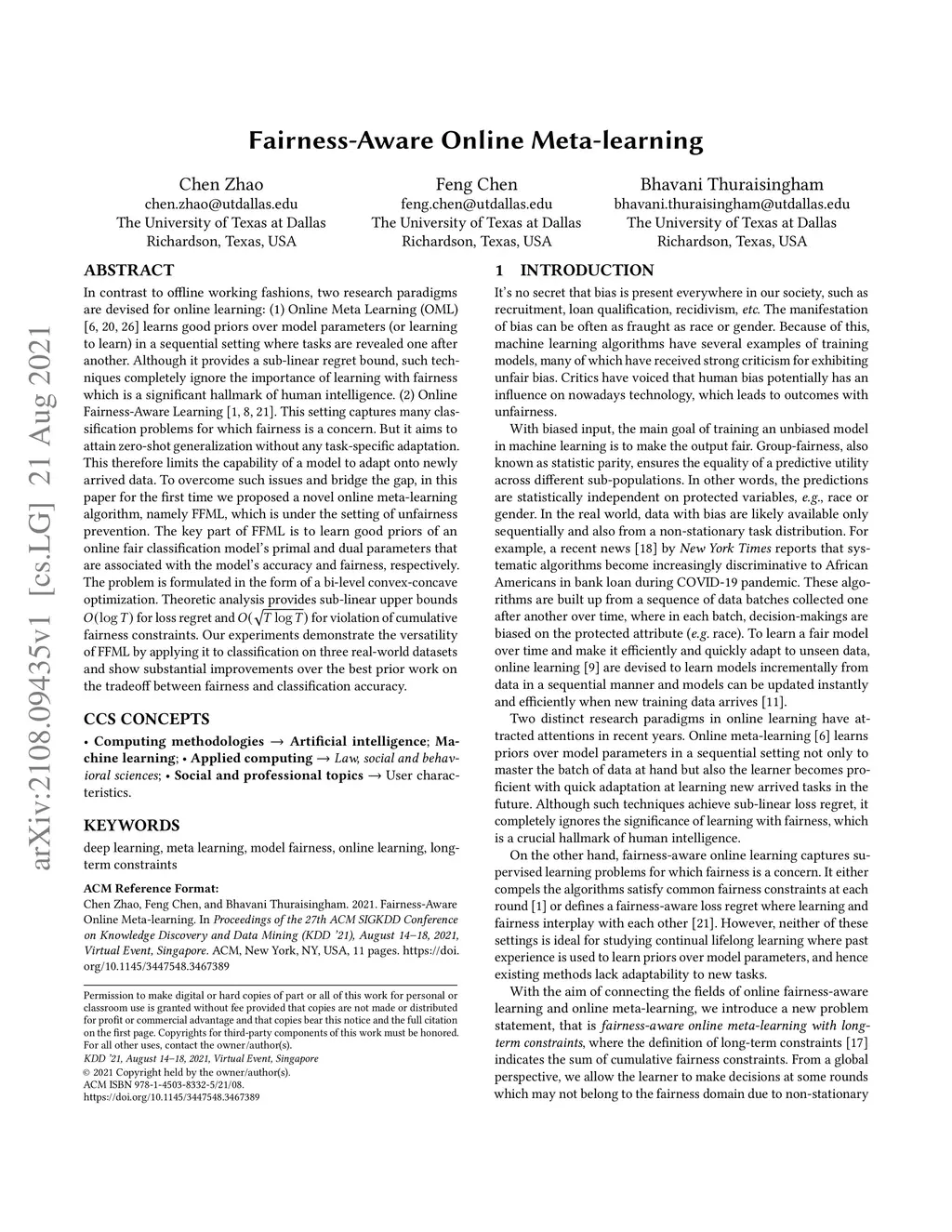 In contrast to offline working fashions, two research paradigms are devised for online learning: (1) Online Meta Learning (OML) learns good priors over model parameters (or learning to learn) in a sequential setting where tasks are revealed one after another. Although it provides a sub-linear regret bound, such techniques completely ignore the importance of learning with fairness which is a significant hallmark of human intelligence. (2) Online Fairness-Aware Learning. This setting captures many classification problems for which fairness is a concern. But it aims to attain zero-shot generalization without any task-specific adaptation. This therefore limits the capability of a model to adapt onto newly arrived data. To overcome such issues and bridge the gap, in this paper for the first time we proposed a novel online meta-learning algorithm, namely FFML, which is under the setting of unfairness prevention. The key part of FFML is to learn good priors of an online fair classification model's primal and dual parameters that are associated with the model's accuracy and fairness, respectively. The problem is formulated in the form of a bi-level convex-concave optimization. Theoretic analysis provides sub-linear upper bounds for loss regret and for violation of cumulative fairness constraints. Our experiments demonstrate the versatility of FFML by applying it to classification on three real-world datasets and show substantial improvements over the best prior work on the tradeoff between fairness and classification accuracy